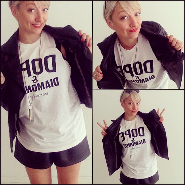 Casie Stewart rockin our Dope & Diamonds tee with some sick Rudsak leather.